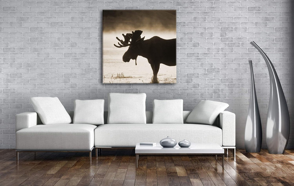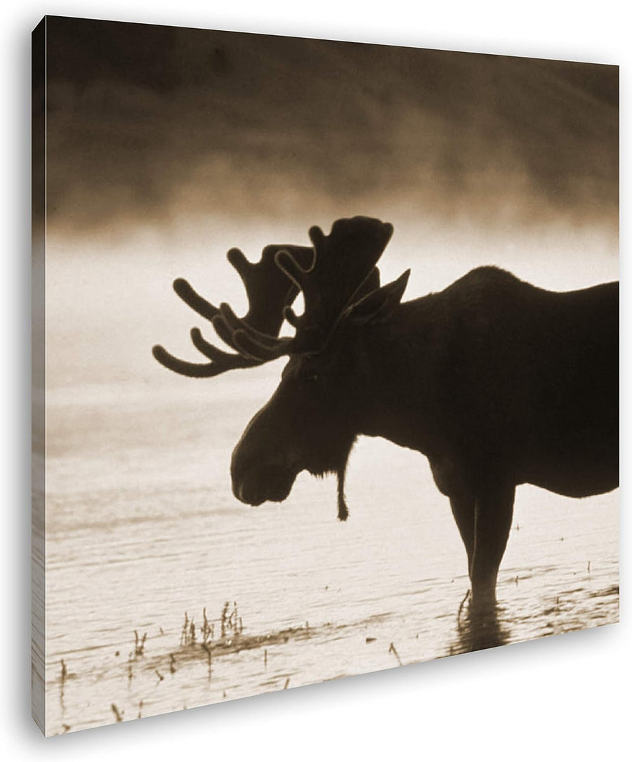 deyoli Elch Silhouette am Wasser Format: 60x60 Effekt: Sepia als Leinwandbild, Motiv auf Echtholzrah