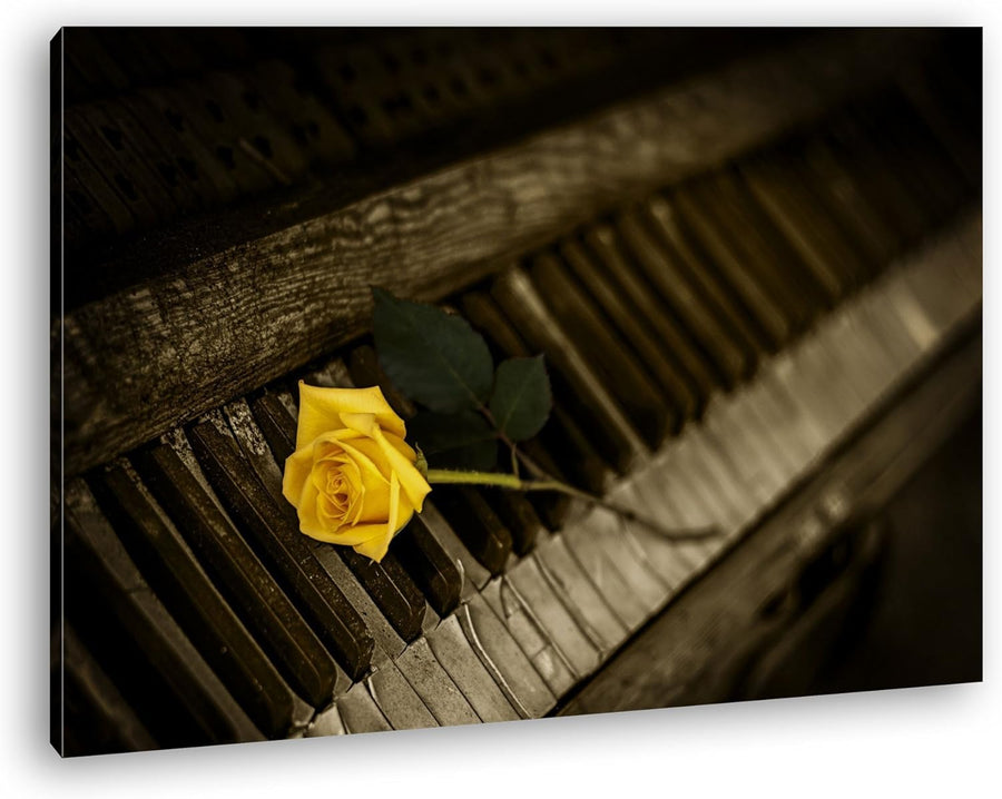 deyoli einzelne gelbe Rose auf einem sehr alten Klavier Format: 80x60 als Leinwandbild, Motiv fertig