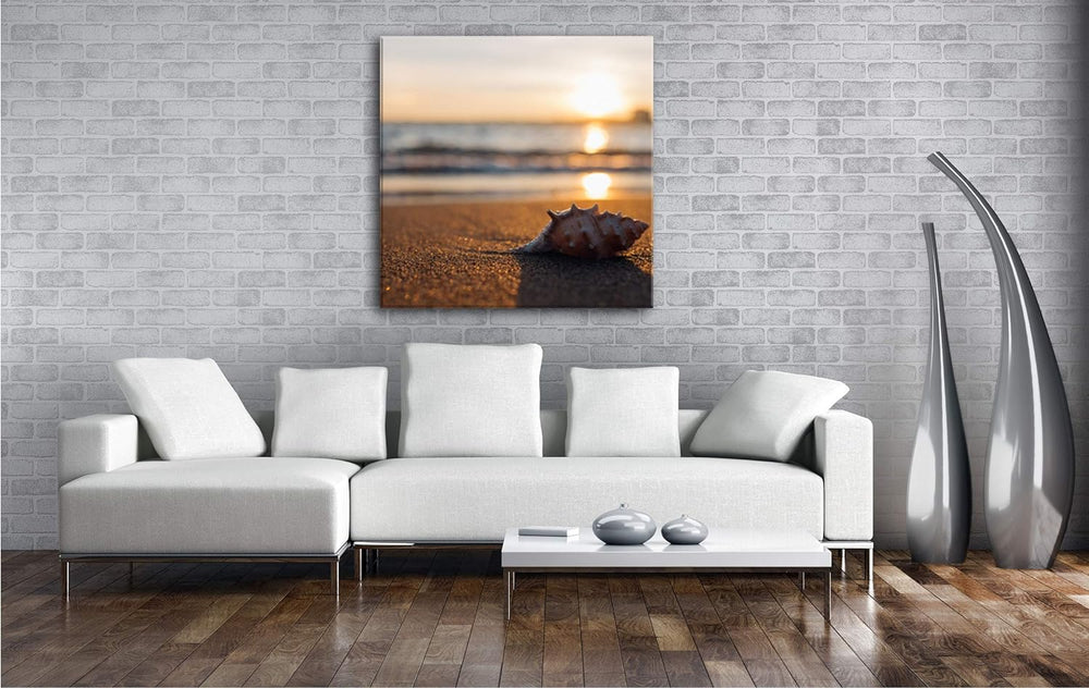 deyoli einzelne Muschel am Strand Format: 70x70 als Leinwand, Motiv fertig gerahmt auf Echtholzrahme