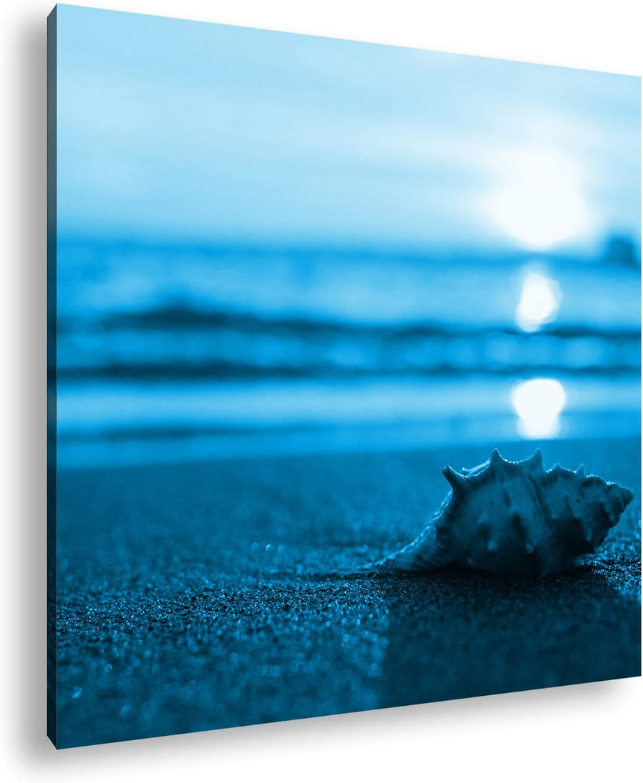 deyoli einzelne Muschel am Strand Format: 70x70 Effekt: Monocrome Blau als Leinwandbild, Motiv ferti