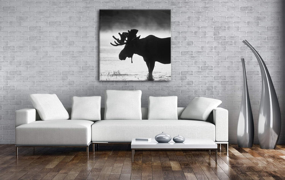 deyoli Elch Silhouette am Wasser Format: 70x70 Effekt: Schwarz&Weiss als Leinwandbild, Motiv auf Ech