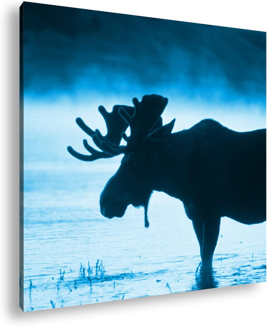 deyoli Elch Silhouette am Wasser Format 80x60 Effekt: Monocrome Blau als Leinwandbild, Motiv fertig