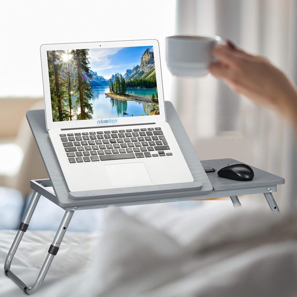 Relaxdays Laptoptisch höhenverstellbar, klappbar, neigbare Arbeitsfläche, Betttisch für Laptop, MDF,