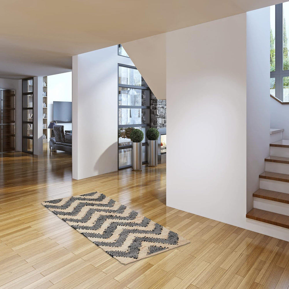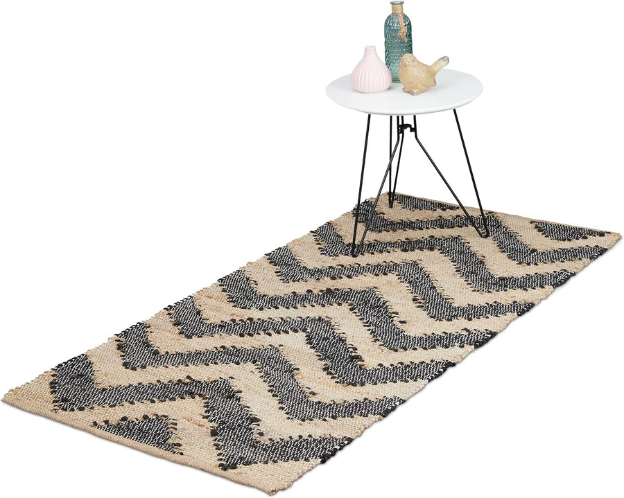 Relaxdays Läufer, Zick-Zack Muster, 70 x 140 cm, Baumwolle und Jute, rutschhemmend, handgewebt, Tepp