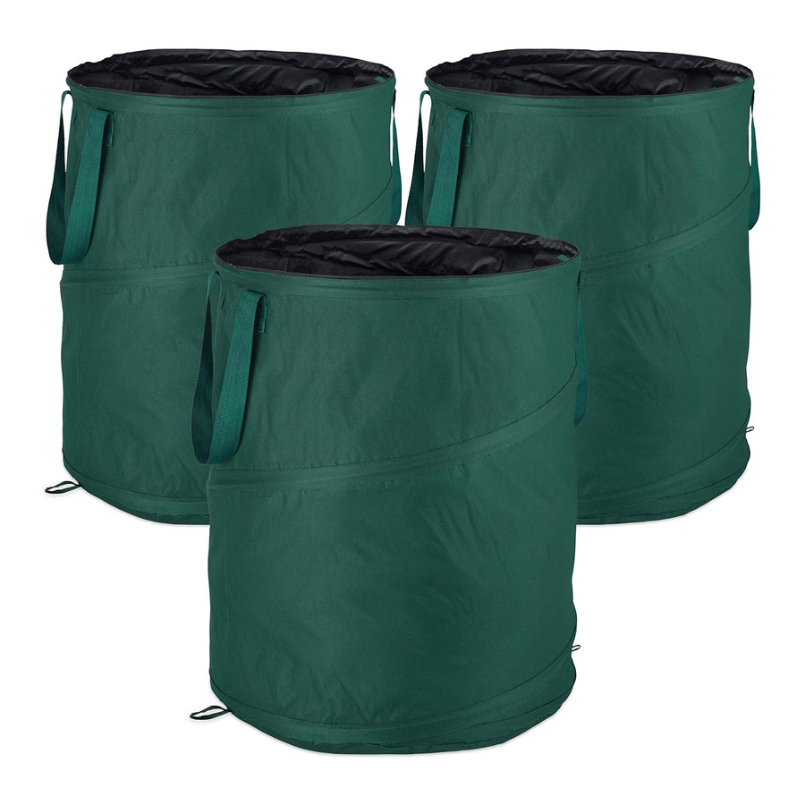 Relaxdays Laubsack selbstaufstellend, 3er-Set, Gartenabfallsack Pop-Up, 160 L, Gartensack selbststeh