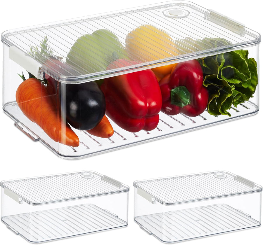 Relaxdays Kühlschrank Organizer, 3er Set, Kühlschrankeinsätze mit Deckel & Datum, HxBxT: 10,5 x 21 x