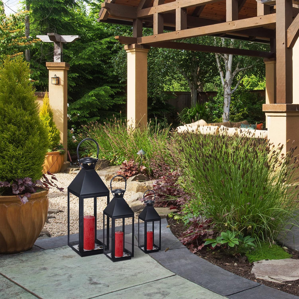 Relaxdays Laternen 3er Set, Dekolaternen für draussen & drinnen, 3 Grössen, Metall, Glas, Windlichte