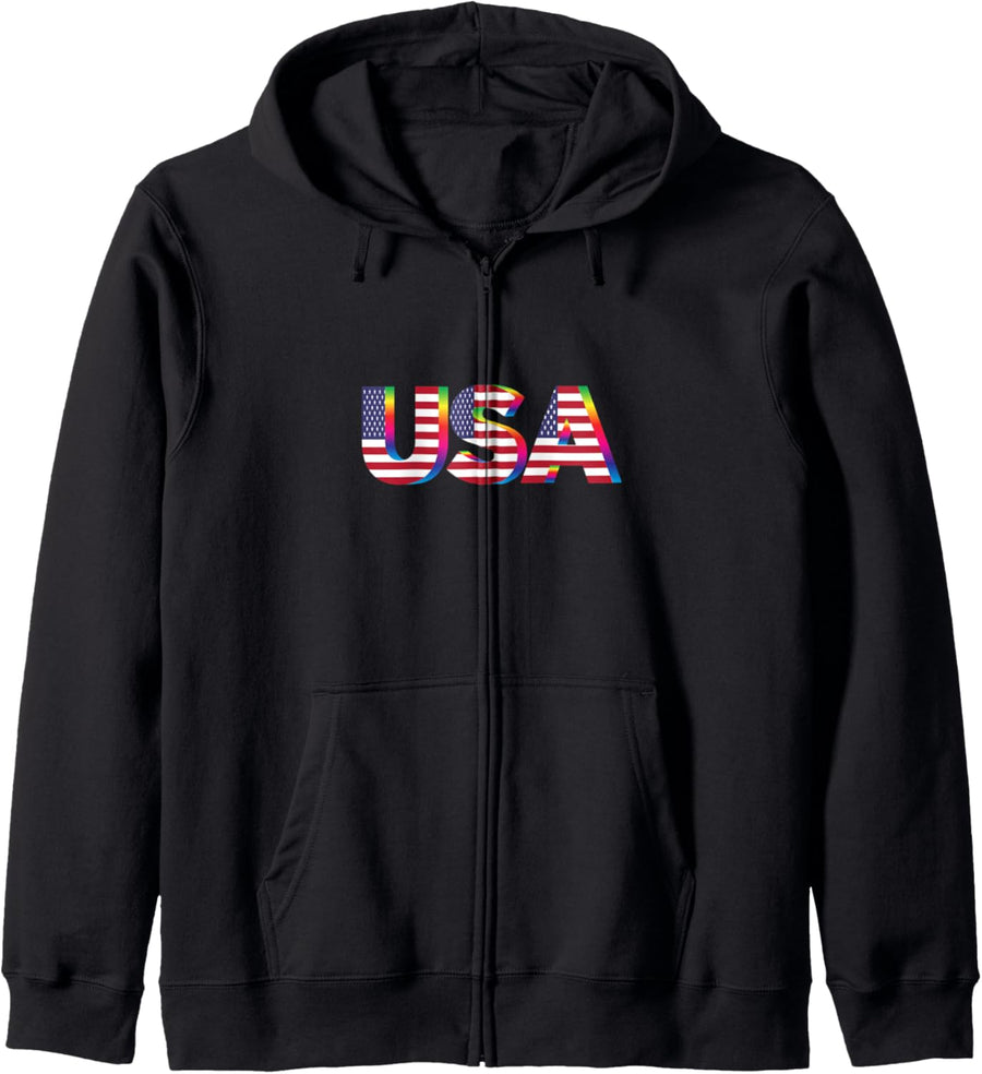Regenbogen Amerikanische Flagge USA Briefe Kapuzenjacke