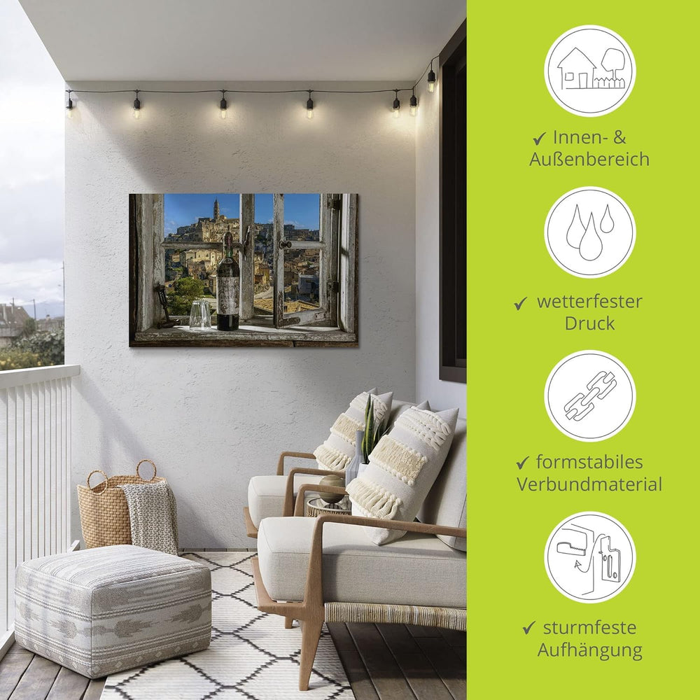 ARTland Wandbild Alu Verbundplatte für Innen & Outdoor Bild 60x40 cm Fensterblick Stadt Italien Wein
