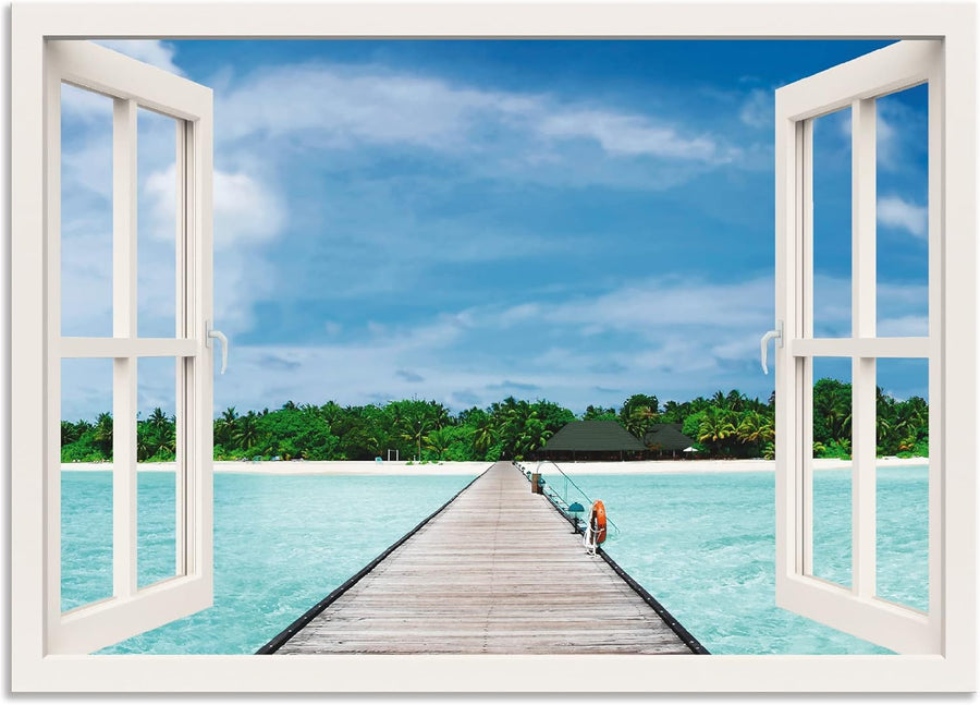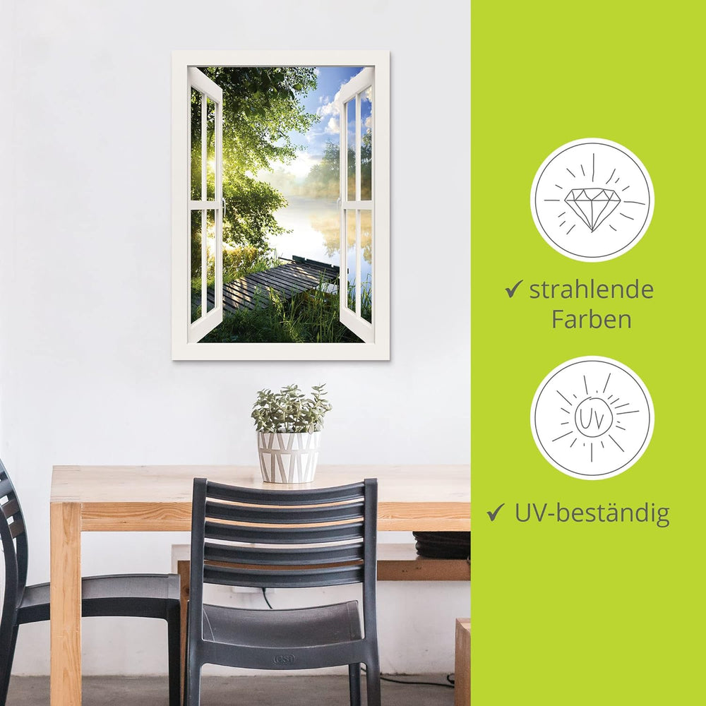 ARTland Wandbild Alu Verbundplatte für Innen & Outdoor Bild 70x100 cm Fensterblick Fenster Landschaf