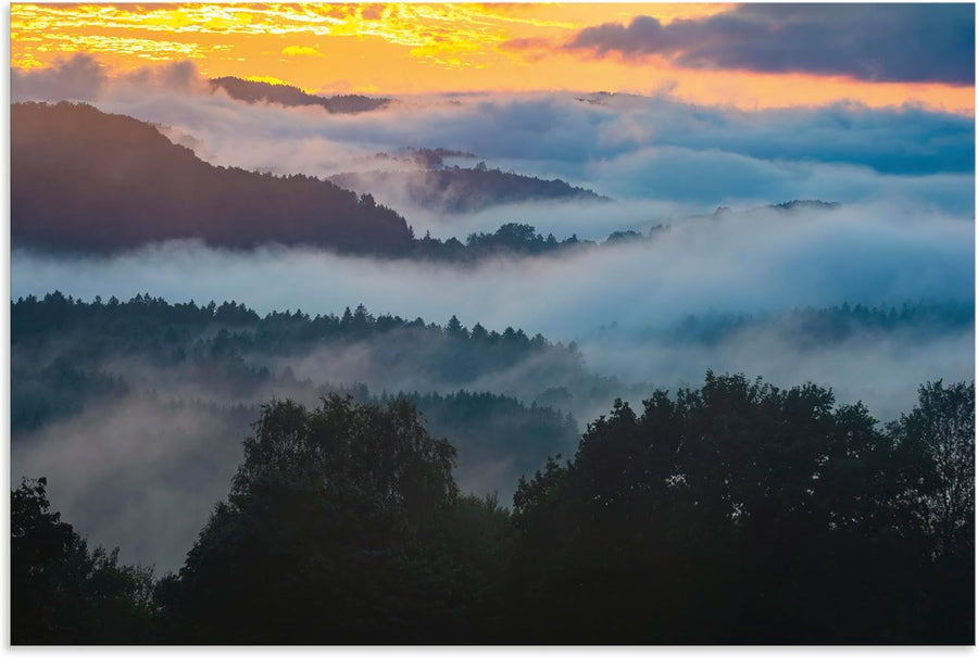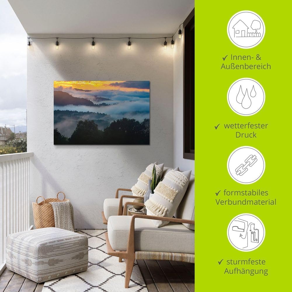 ARTland Wandbild Alu Verbundplatte für Innen & Outdoor Bild 90x60 cm Landschaften Wald Bäume Nebel H