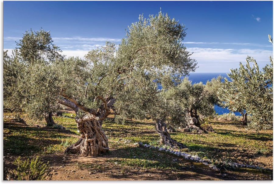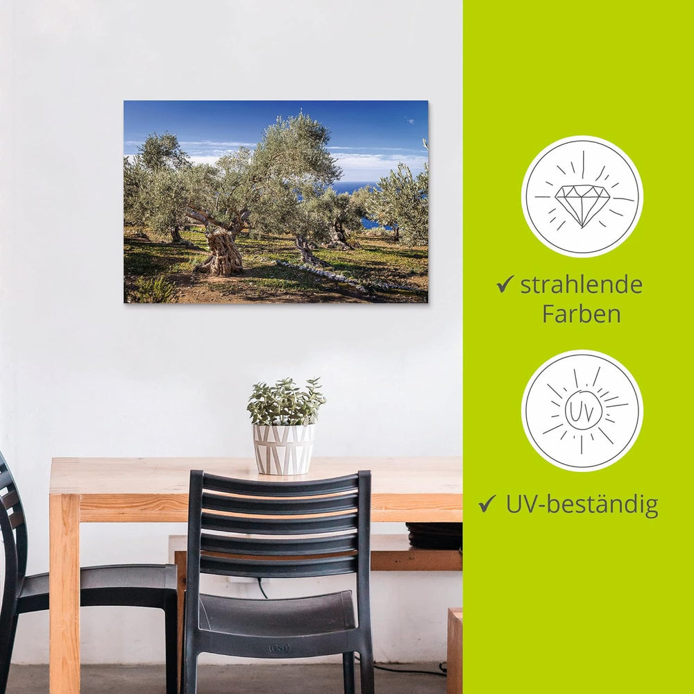 ARTland Wandbild Alu Verbundplatte für Innen & Outdoor Bild 60x40 cm Pflanzen Bäume Hain Oliven Meer