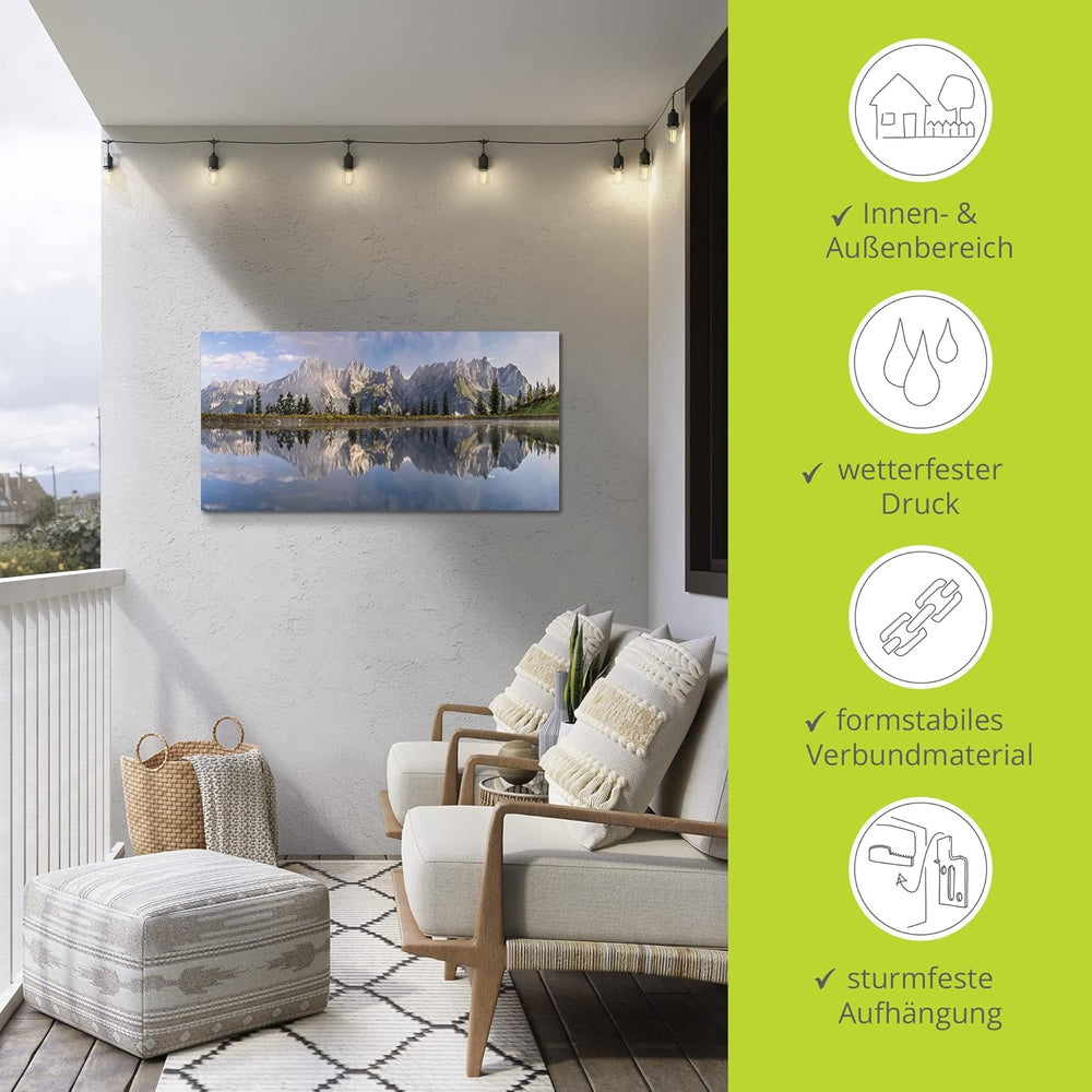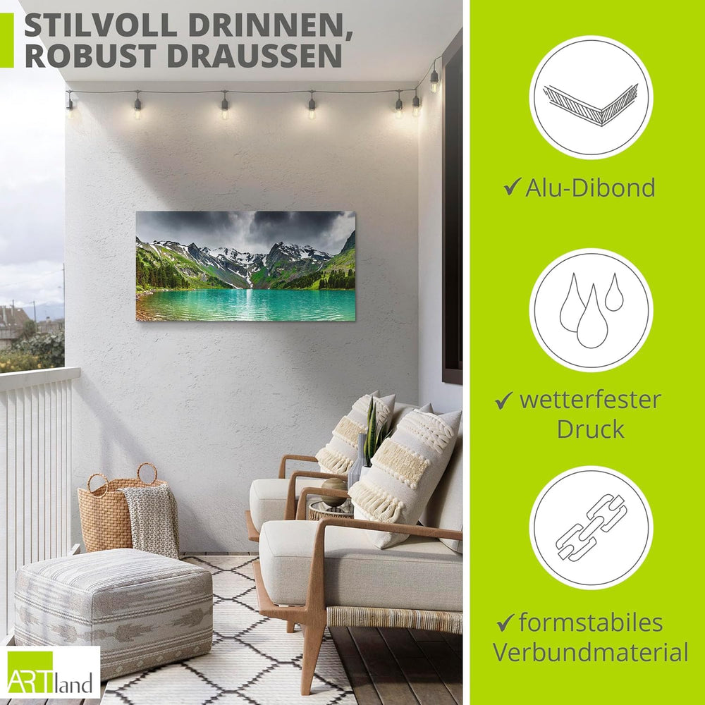 ARTland Wandbild Alu Verbundplatte für Innen & Outdoor Bild 60x30 cm Querformat Landschaft Berge Alp