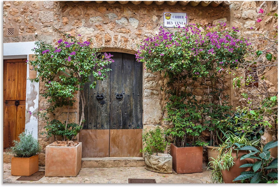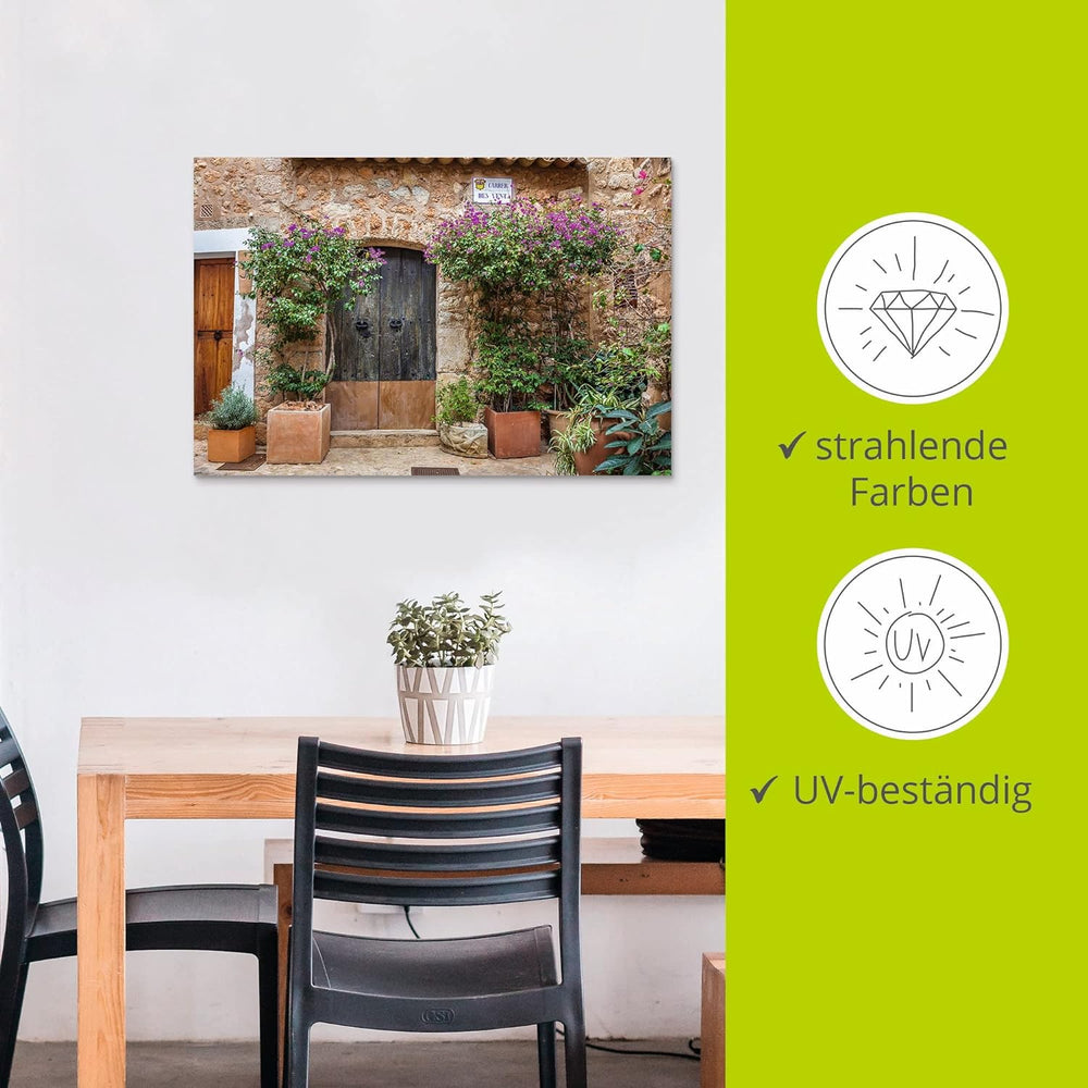 ARTland Wandbild Alu Verbundplatte für Innen & Outdoor Bild 90x60 cm Altes Haus Tür Tor Pflanzen Blu