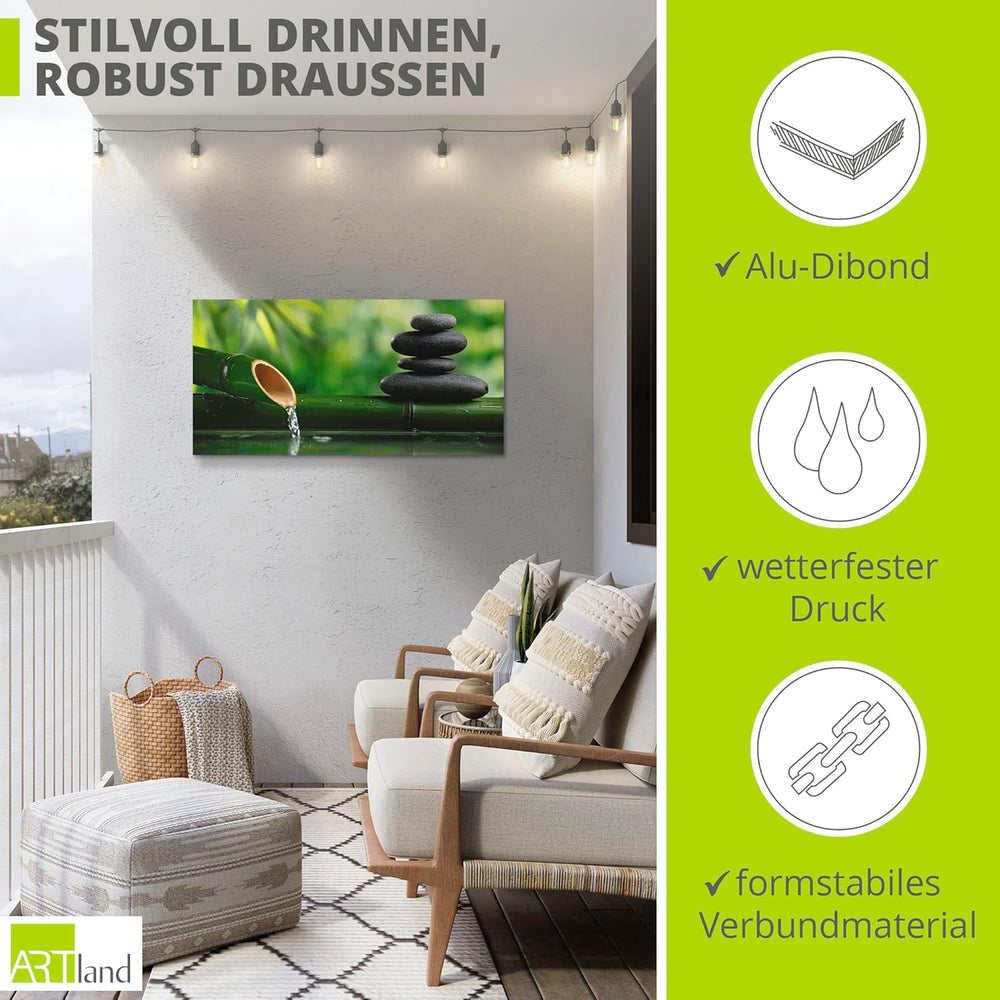 ARTland Wandbild Alu Verbundplatte für Innen & Outdoor Bild 60x30 cm Wellness Zen Stein Fotografie G