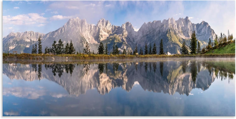 ARTland Wandbild Alu Verbundplatte für Innen & Outdoor Bild 60x30 cm Landschaft Berge Alpen Bäume Se