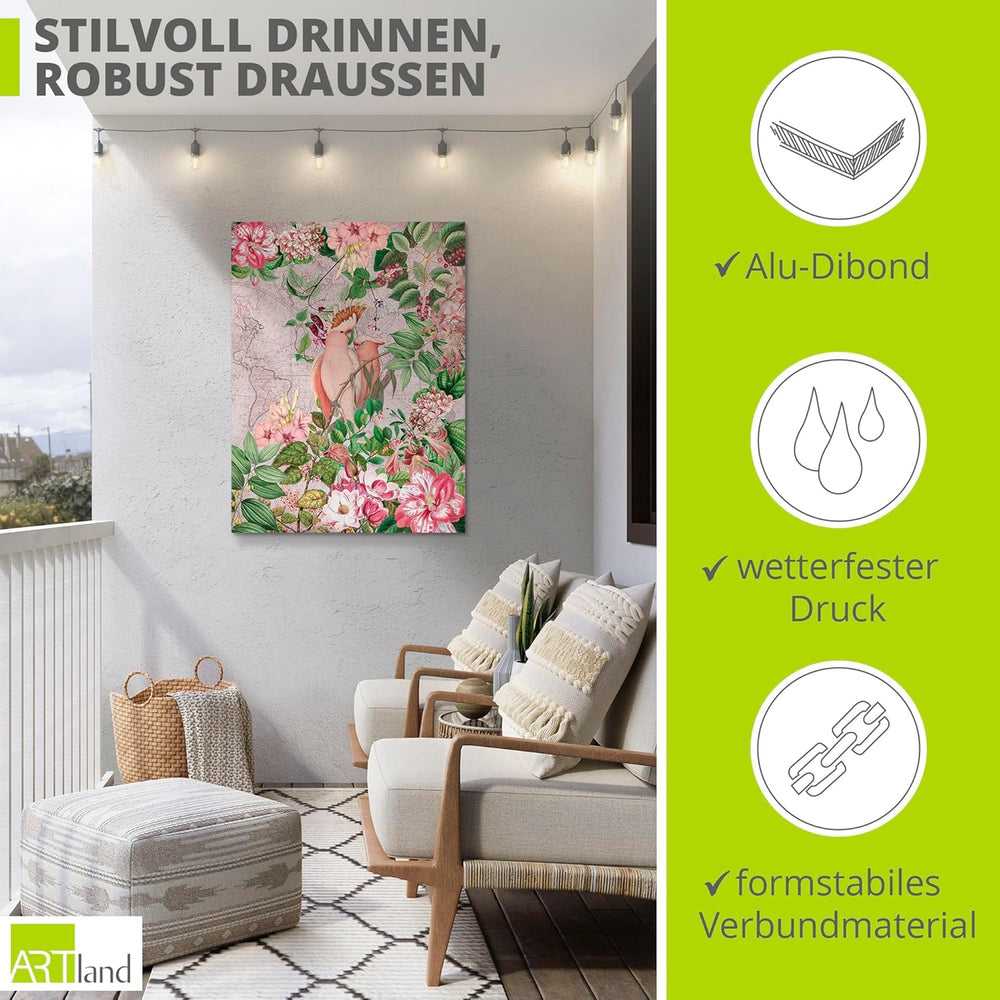 ARTland Wandbild Alu Verbundplatte für Innen & Outdoor Bild 60x80 cm Papagei Kakadu Garten exotische