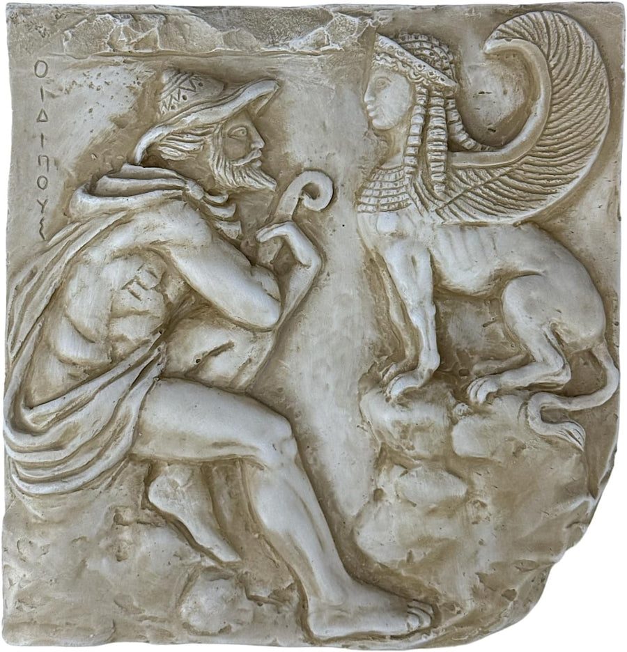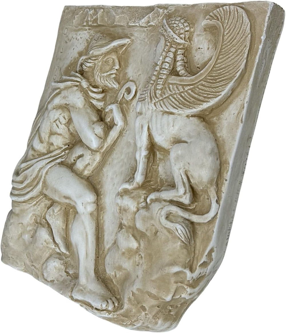 Oedipus and Sphinx Plakette Relief Wanddeko Skulptur Steinguss Griechische Mythologie