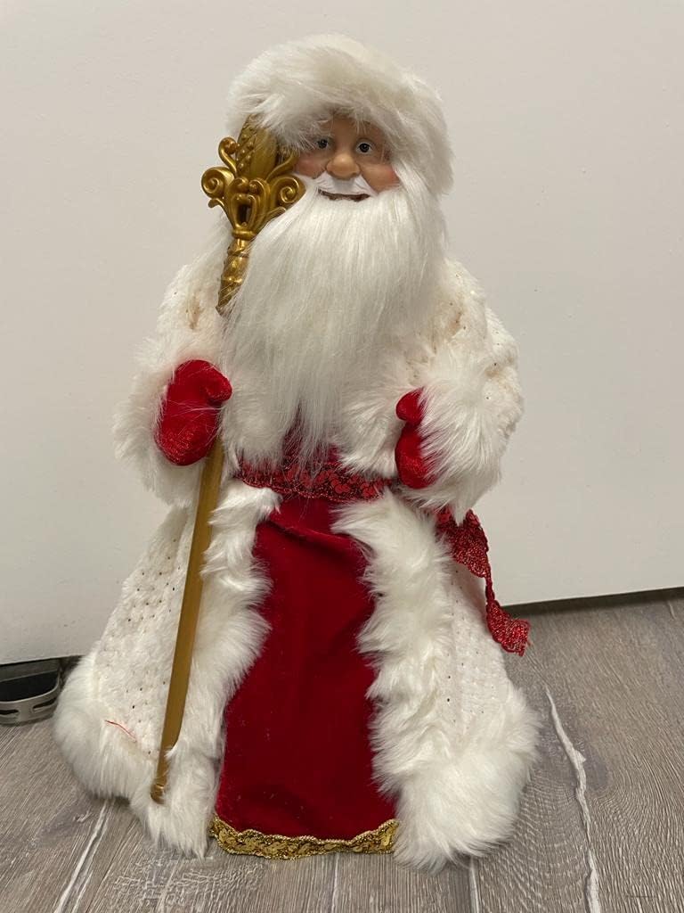 Olymp DED Moroz 50 cm hoch | Deckofigur Weihnachtsmann in Weiss mit Bonbonbehälter | Santa-Claus-Fig