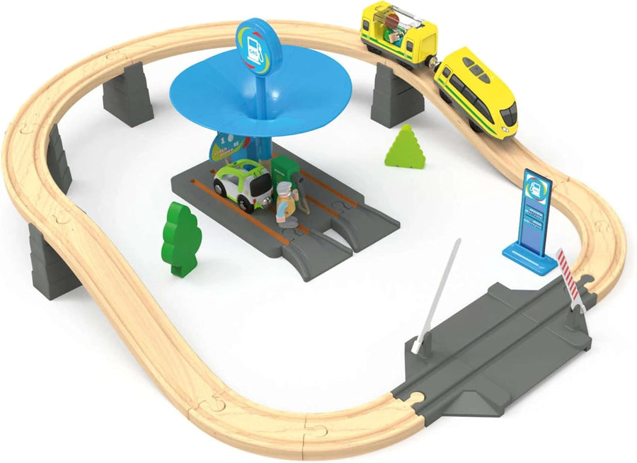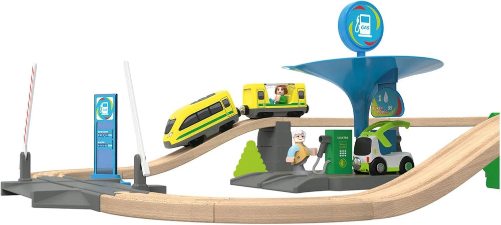 Playtive Eisenbahn-Set Tankstelle Europäisches Buchenholz Holzschienen