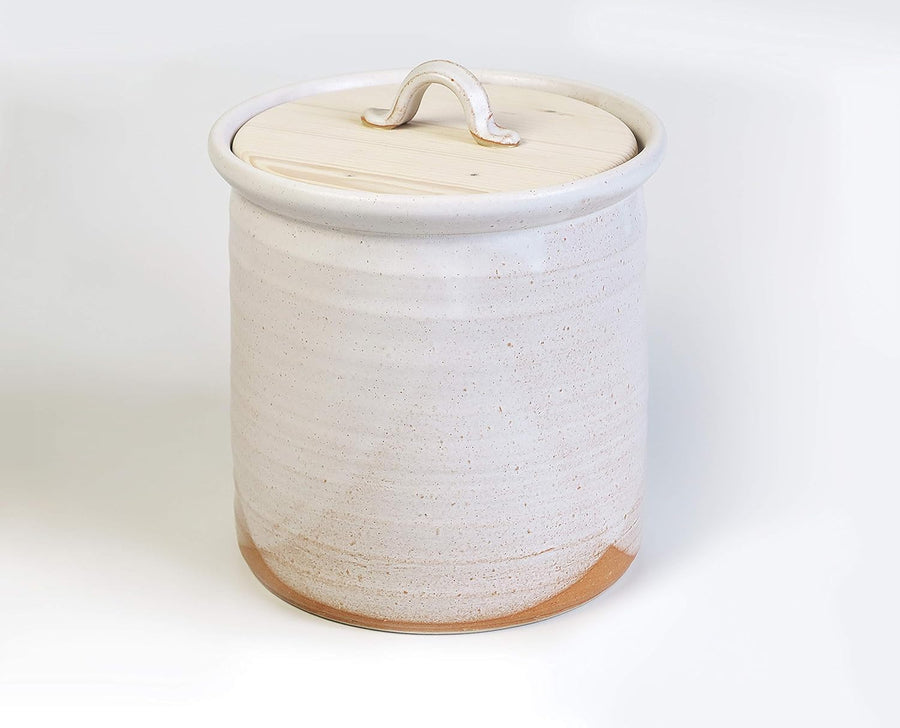 Platzspar-Brottopf, weiss-sand, Keramik/Holz, mit fast so viel Volumen wie die M-Grösse