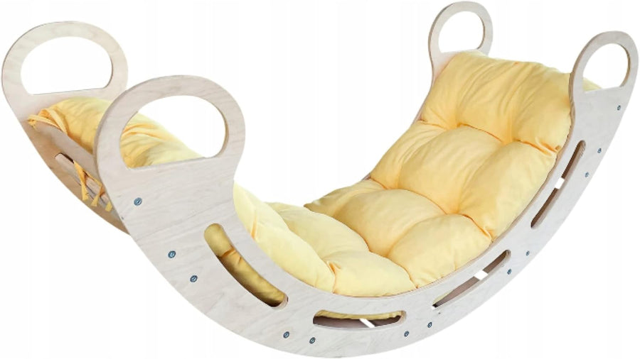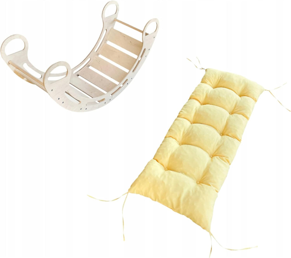 Montessori Kletterbogen Natur Mit Kissen (gelb) für Kinder 85x41,5x39 cm - Klettergerüst Indoor ab 1
