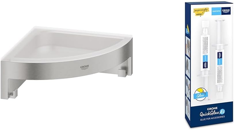 GROHE Start Cube - Eckseifenschale (für Eckmontage, langlebig), supersteel, 41106DC0 + Kleber- Set f