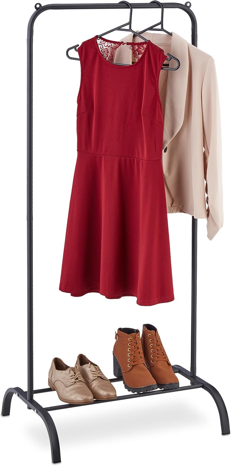 Relaxdays Kleiderständer Metall, mit Ablage, Schlafzimmer, Kleiderstange, HxBxT: 144 x 60 x 44 cm, f