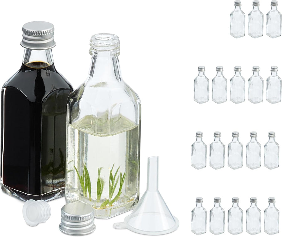 Relaxdays kleine Flaschen, 20er Set, 50 ml, Glasflaschen zum Befüllen, Schraubverschluss & Korken, t