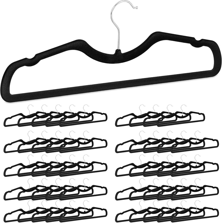 Relaxdays Kleiderbügel Samt, 50er Set, rutschfest, platzsparend, B: 42,5 cm, Hosensteg, Einkerbungen