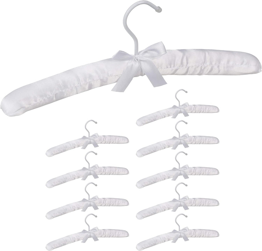 Relaxdays Kleiderbügel Satin, 10er Pack, weich gepolstert, 360° drehbarer Haken, dekorative Schleife