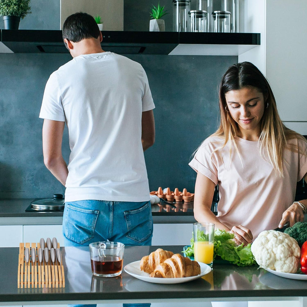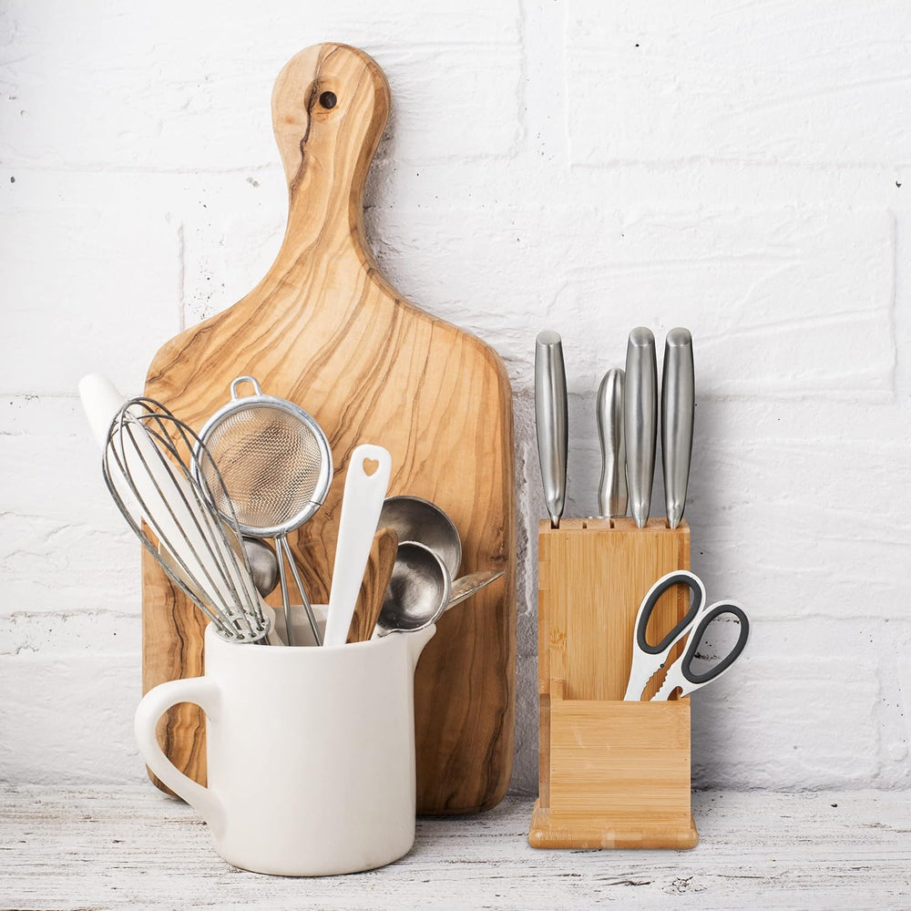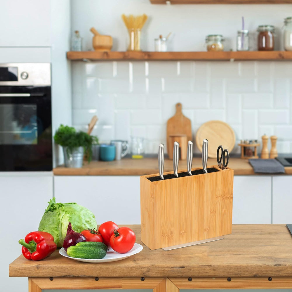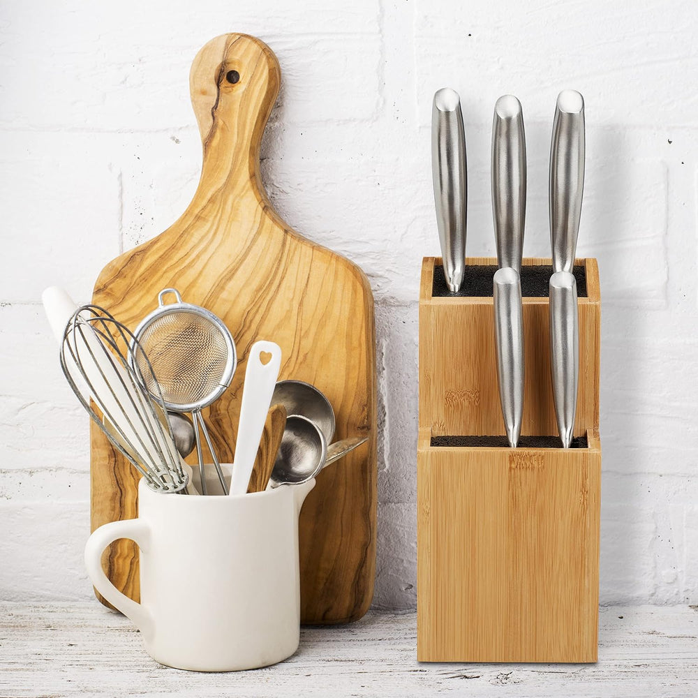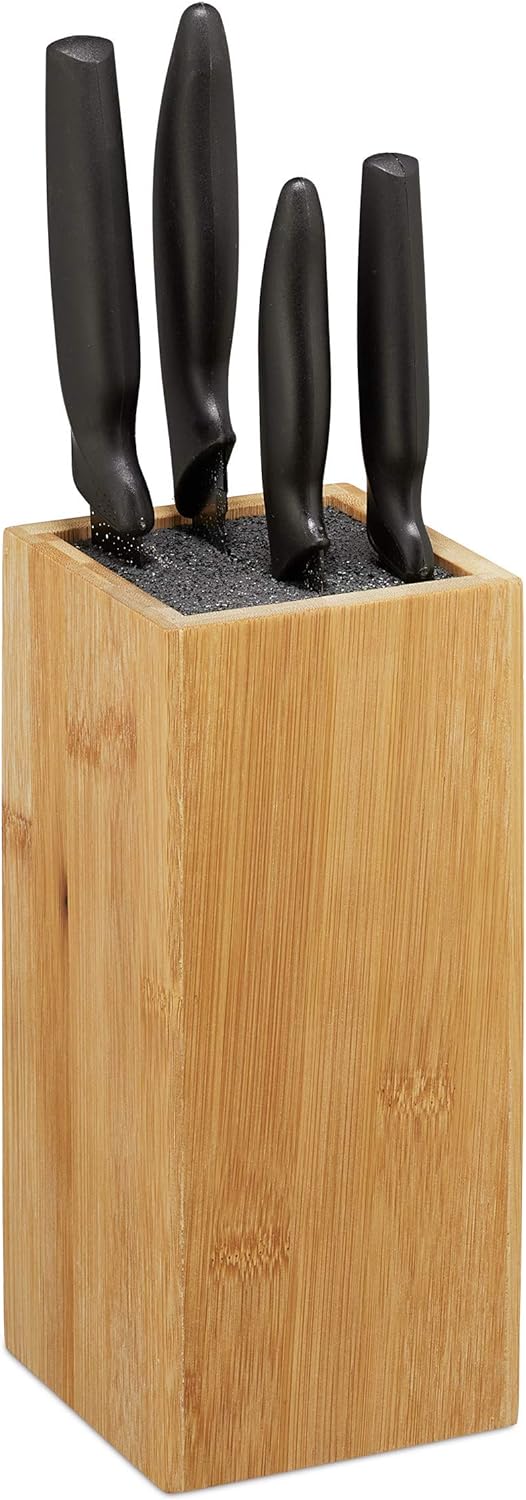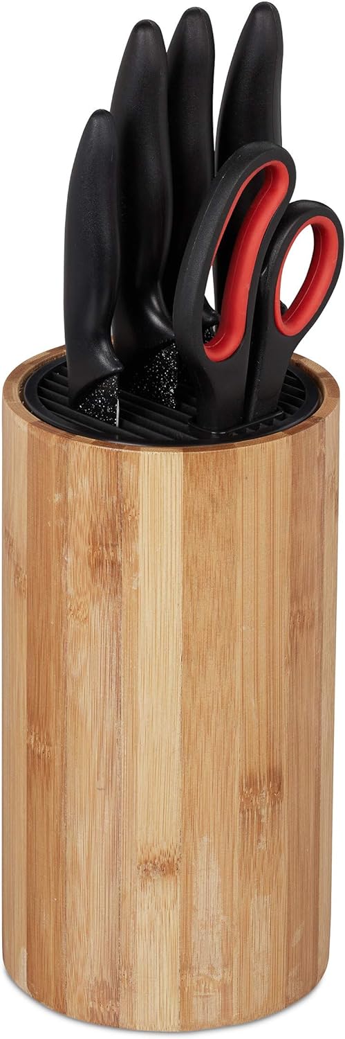 Relaxdays Messerblock mit Borsten, Küchenblock unbestückt, für 6 Messer, Holzblock aus Bambus, HBT 2