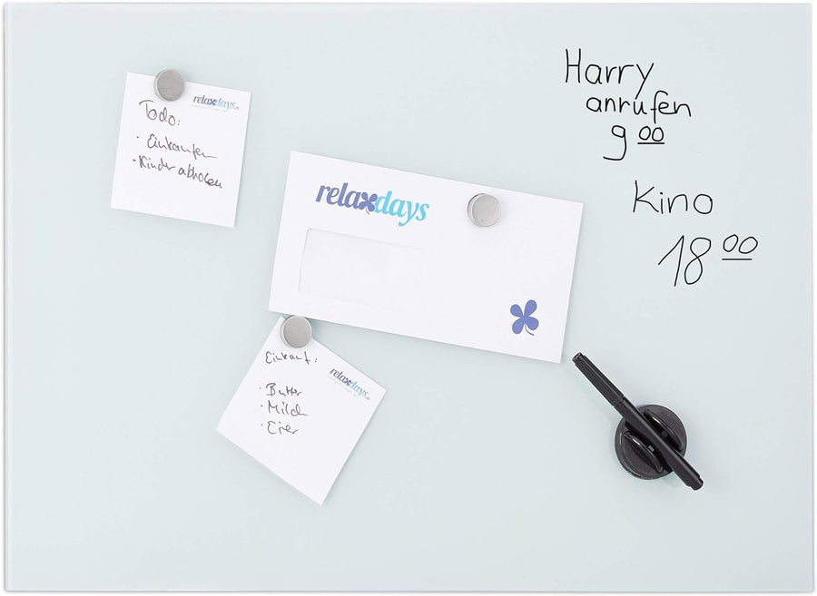 Relaxdays Magnettafel Glas, magnetisch, abwischbar, Büro & Zuhause, Magnete & Stift, Whiteboard HxB: