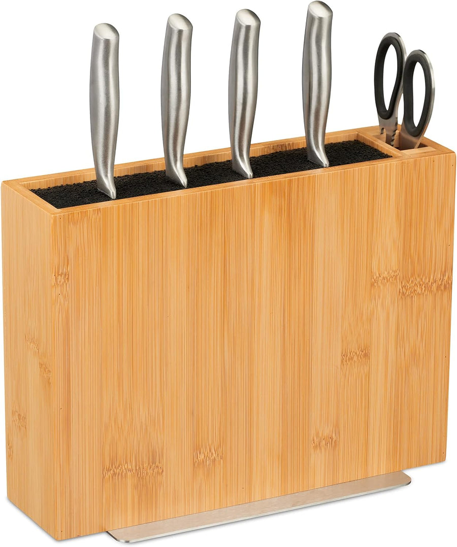 Relaxdays Messerblock unbestückt, Messeraufbewahrung breite Klingen, Messerständer universal, Bambus
