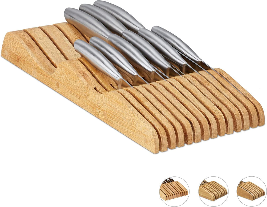 Relaxdays Messerhalter Bambus, Schubladeneinsatz für Messeraufbewahrung, Schubladenorganizer, HBT: 6