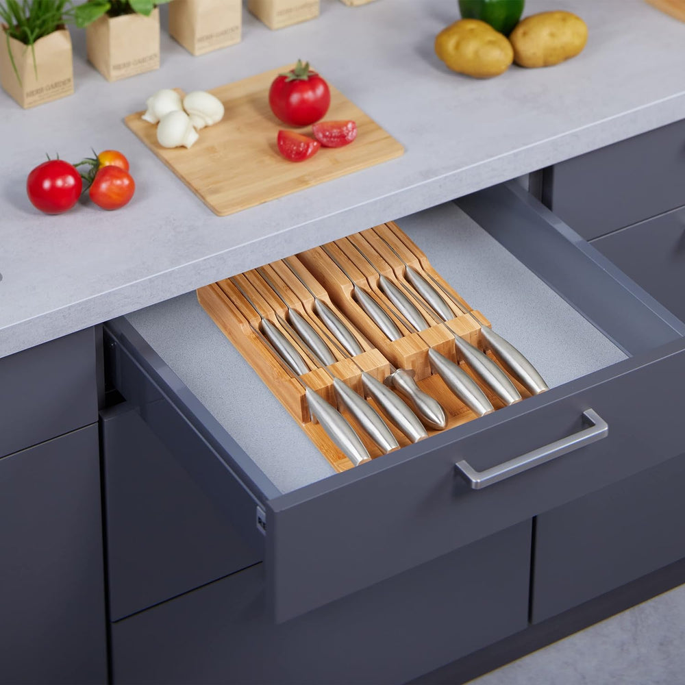 Relaxdays Messerblock Schublade, liegend, Bambus, für 13 Messer, HBT: 5x17x40 cm, Schubladeneinsatz,