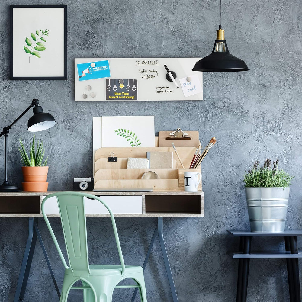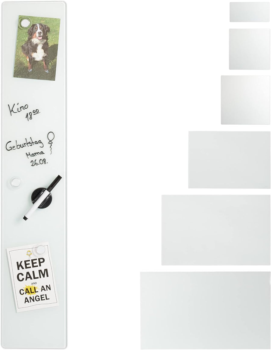 Relaxdays Magnettafel Glas, 15x80 cm, 3 Magneten, Marker, Stiftehalter, Büro & Küche, Sicherheitsgla