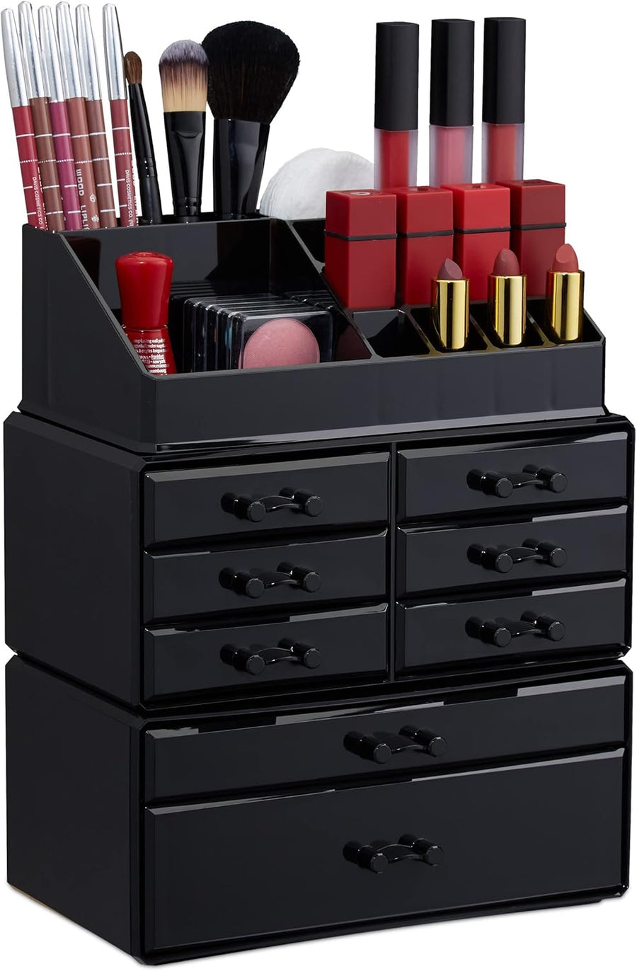 Relaxdays Make Up Organizer mit Schubladen, stapelbarer Schmuckkasten für Make Up, Acryl Schminkaufb