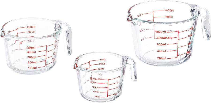 Relaxdays Messbecher Set, 3-teilig, Glasmessbecher 250 ml, 500 ml, 1l, hitzebeständig, mikrowellenge