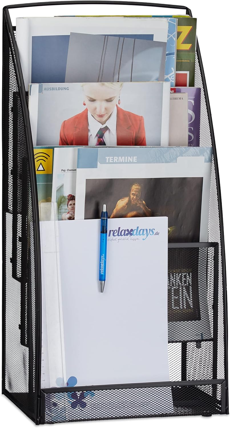Relaxdays Magazinständer Metall, gross, 4 Fächer, Zeitungsständer, modern, Büro, Wartebereich, HBT 6