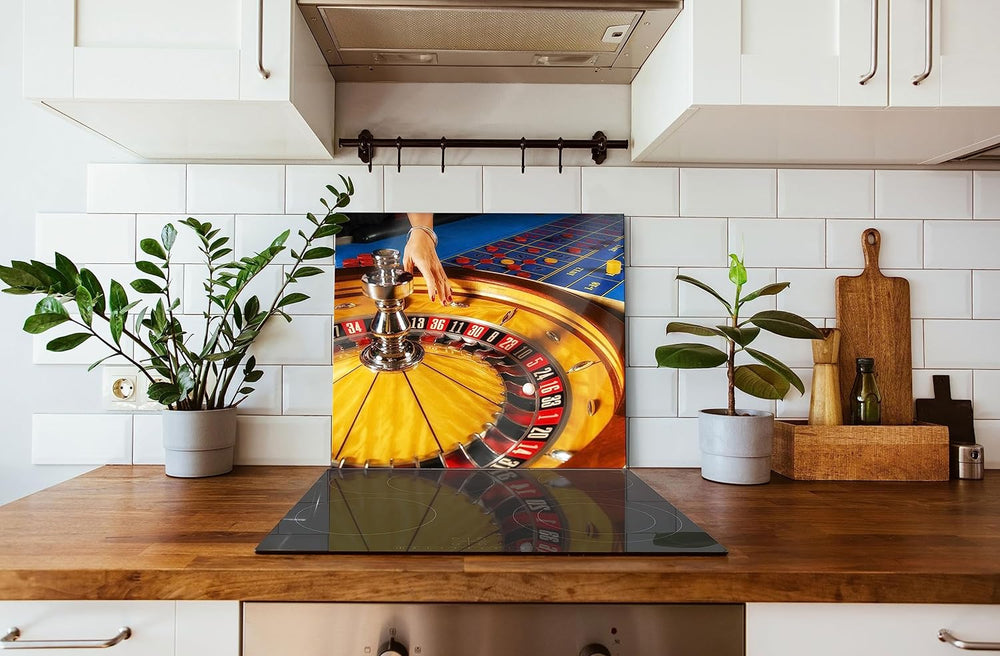 Roulettetisch Herdabdeckplatte & Spritzschutz aus Echtglas | Für Herd-Kochfelder | 60x52 cm