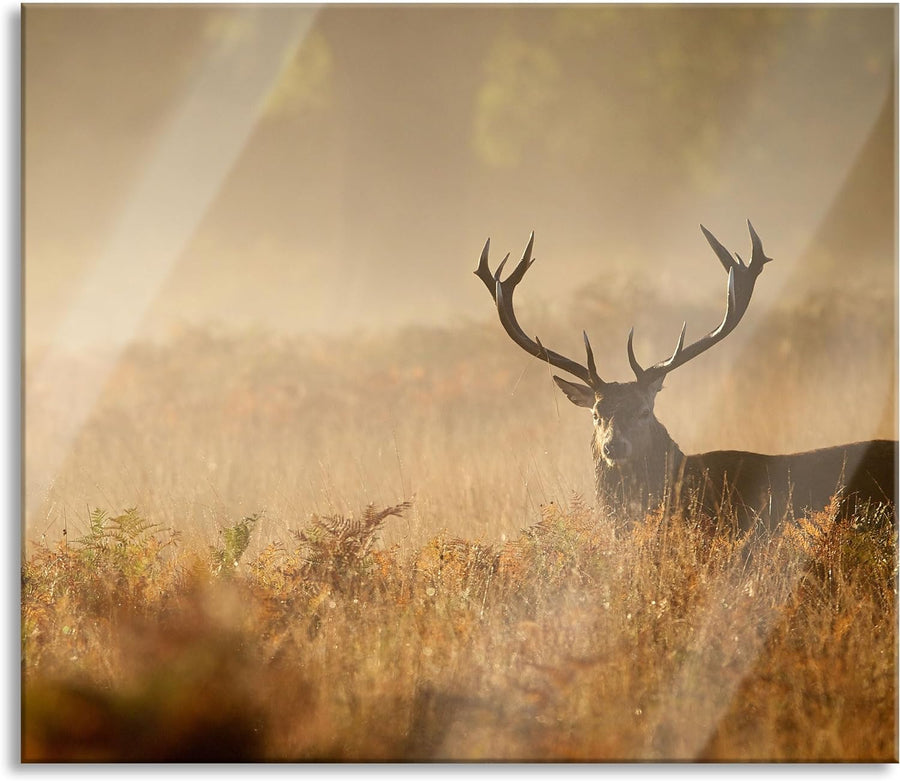 Rotwild Hirsch im Nebel Herdabdeckplatte & Spritzschutz aus Echtglas | Für Herd-Kochfelder | 60x52 c