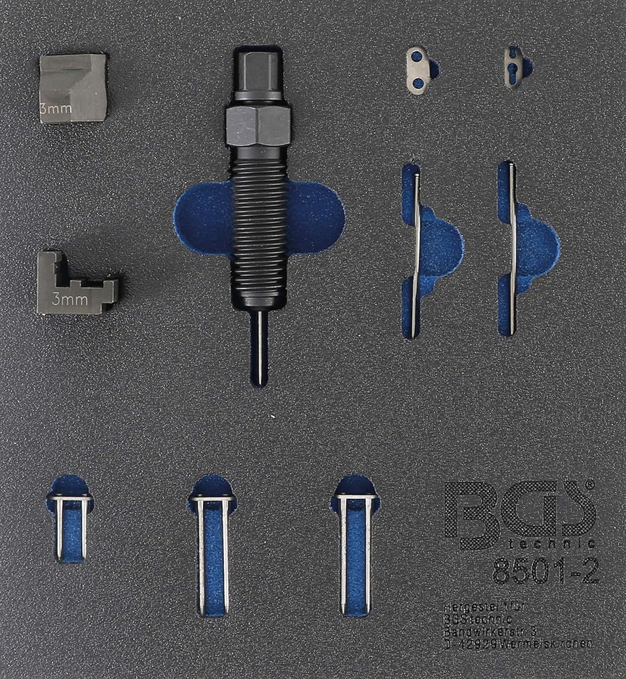 BGS 8501-2 | Werkstattwageneinlage 1/6: Ergänzungssatz für Steuerketten-Nietgerät (Art. 8501) | geei