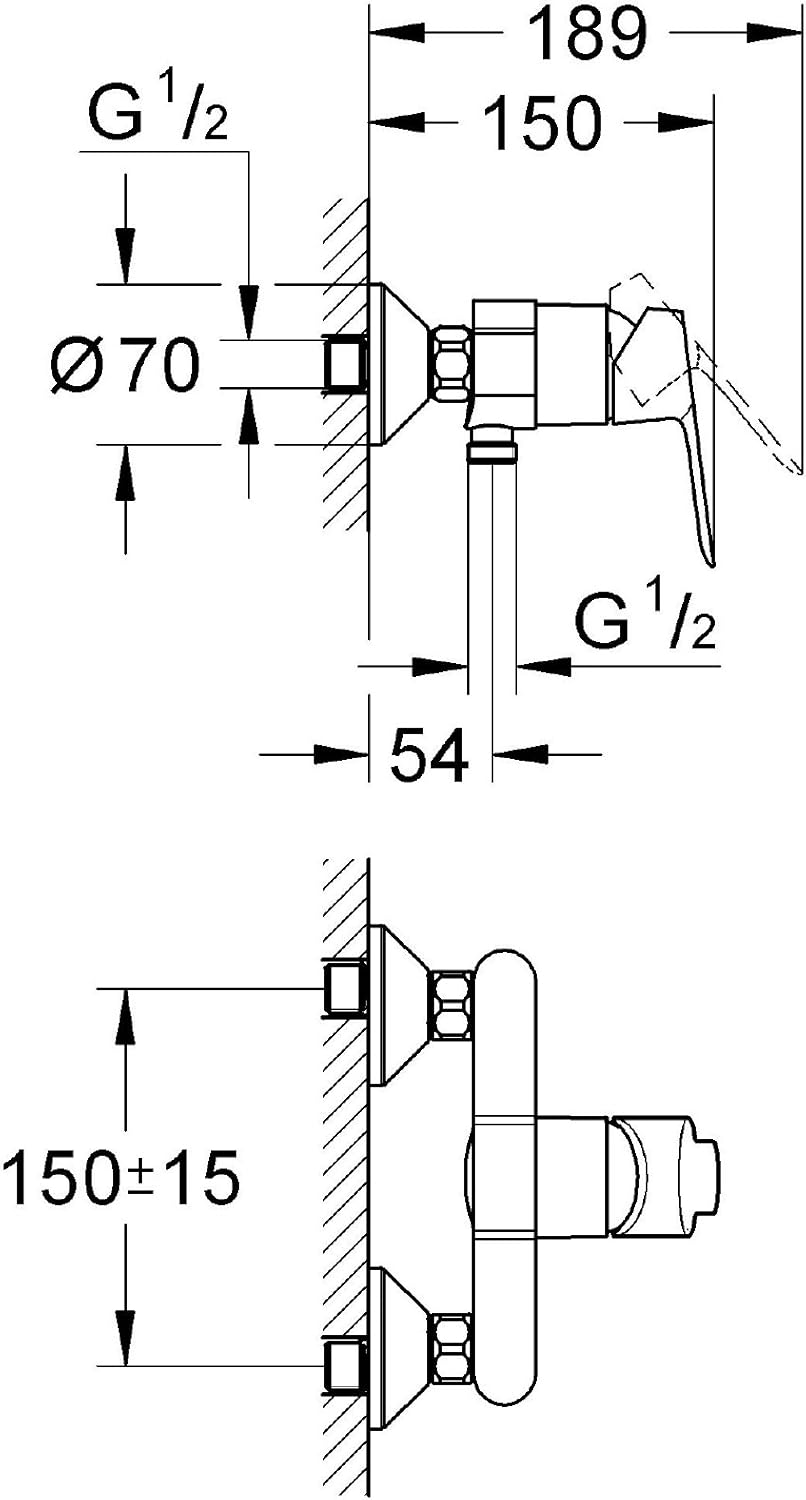 GROHE Start Flow - Einhand-Wannenarmatur (Wandmontage, langlebige Oberfläche, einstellbare Mengenbeg