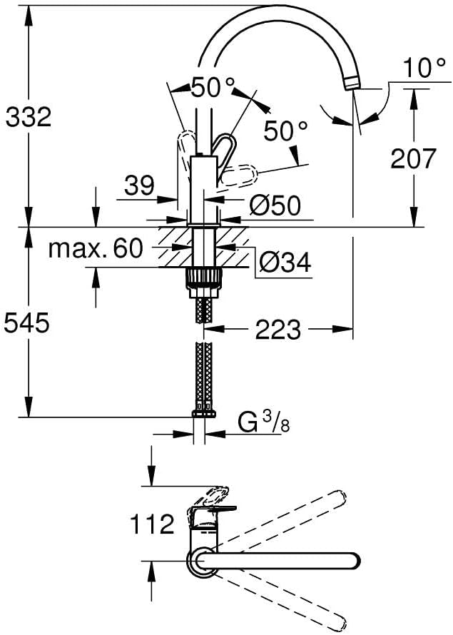 GROHE StartCurve - Einhand- Spültischarmatur (hoher Auslauf, herausziehbare Mousseurbrause, Schwenkb