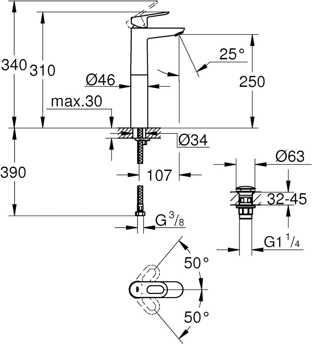 GROHE Start Edge - Einhand-Waschtischarmatur (wassersparend, XL- Size, flexible Anschlussschläuche),