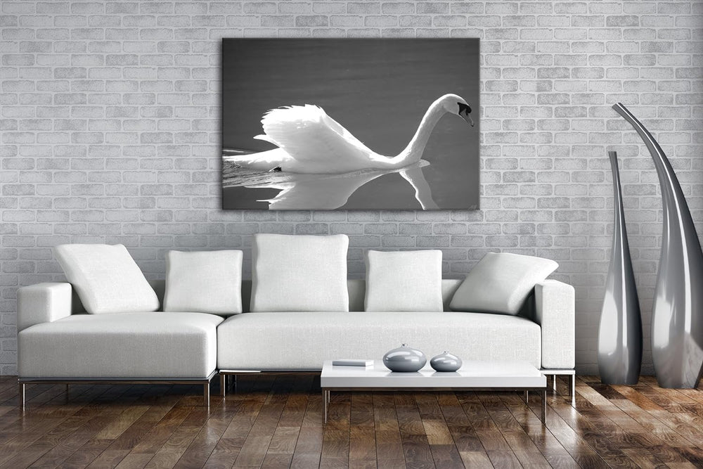deyoli entzückender Schwan Effekt: Schwarz/Weiss Format: 80x60 als Leinwandbild, Motiv fertig gerahm