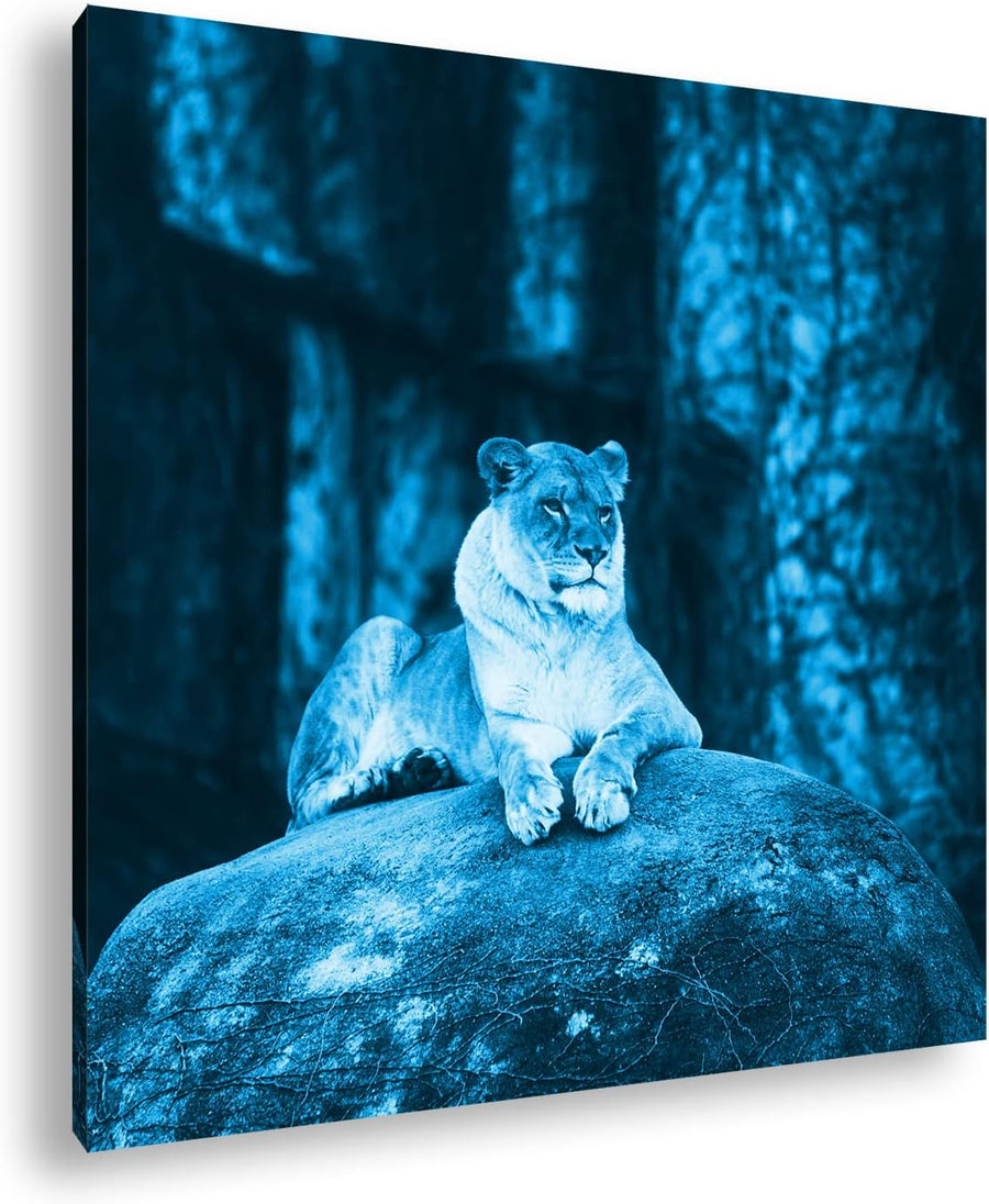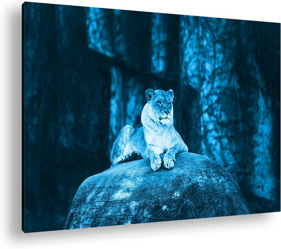 deyoli erhabene stolze Löwin Format: 80x60 Effekt: Monocrome Blau als Leinwand, Motiv fertig gerahmt
