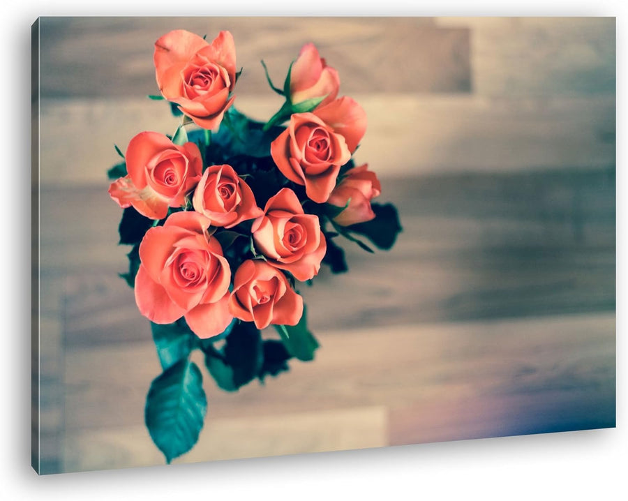 deyoli entzückender Strauss Rosen Format: 80x60 als Leinwandbild, Motiv fertig gerahmt auf Echtholzr