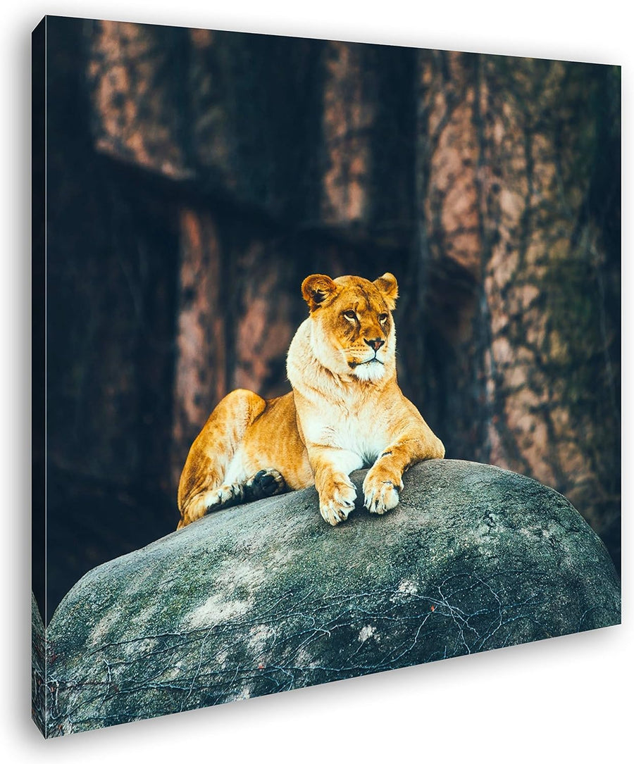 deyoli erhabene stolze Löwin Format: 60x60 als Leinwand, Motiv fertig gerahmt auf Echtholzrahmen, Ho